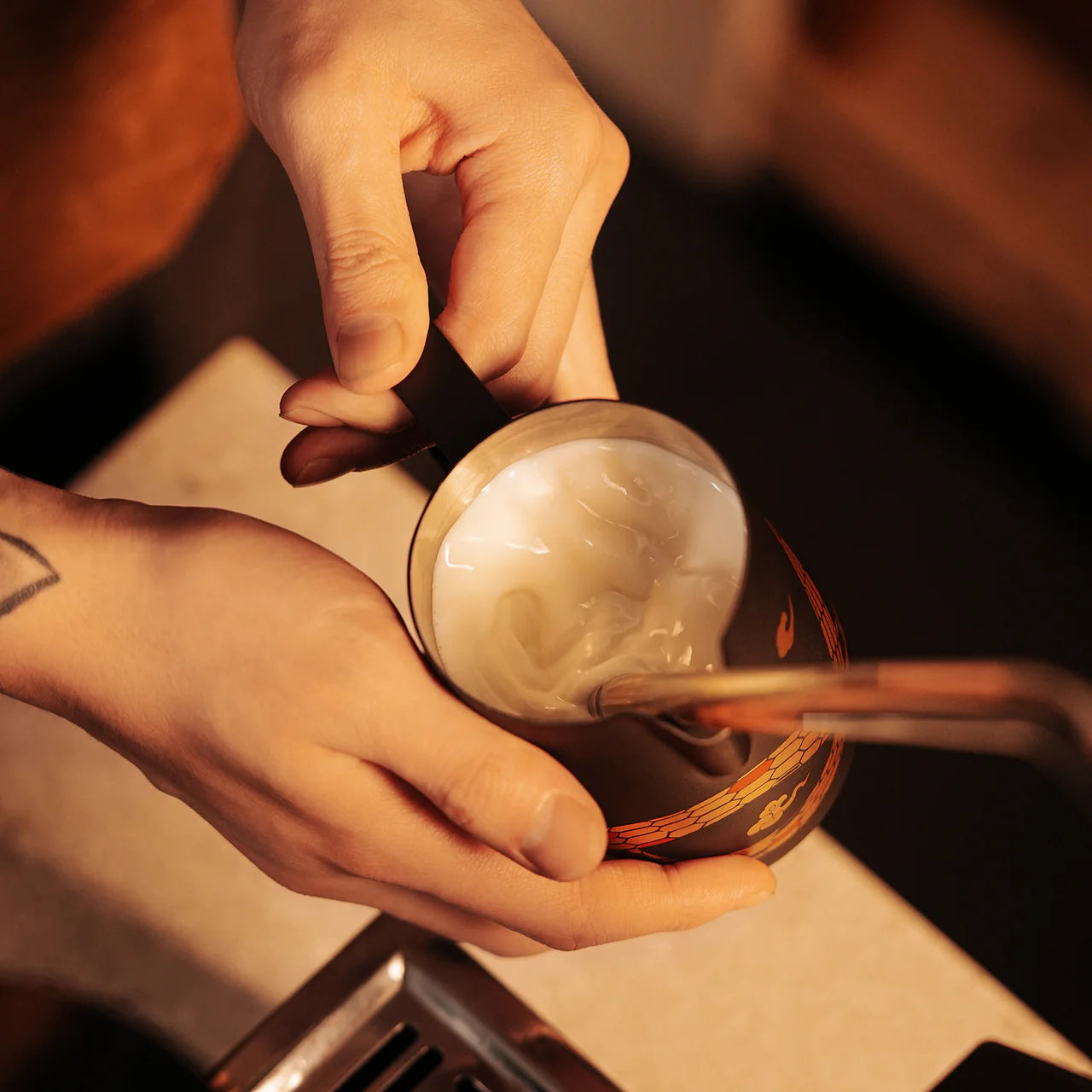 Unique design with Serpent print, combining traditional art and modern style. - Turbo Design Philosophy: The design idea is derived from the turbine's spin, which is more suited to the high-speed rotation of the milk and results in a higher degree of fusion in the foam.